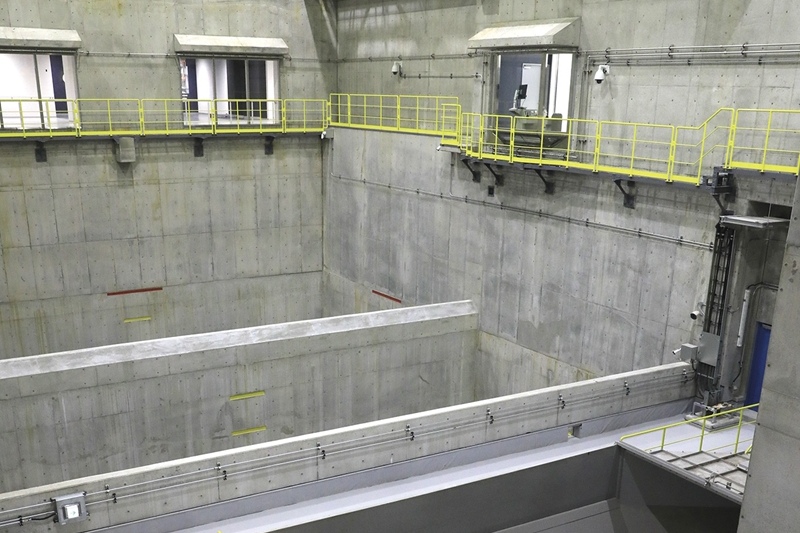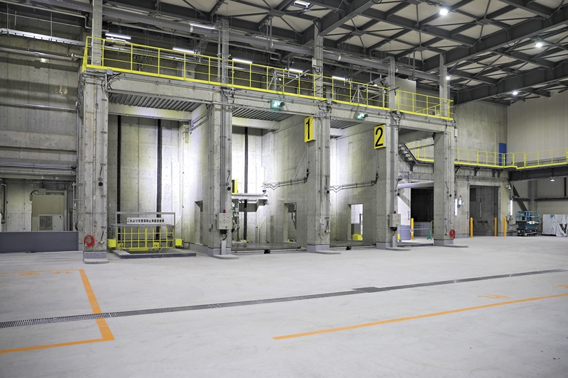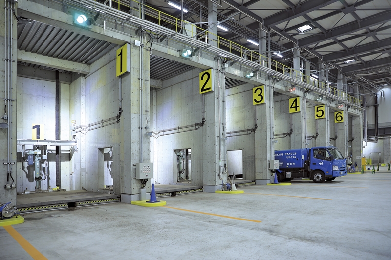 ごみ収集車はこのプラットホームに進入し、ごみ投入扉からごみ受入ピットへごみを投入します。