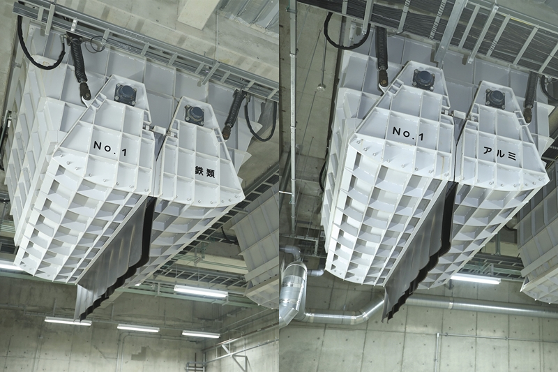 鉄類・不燃物・アルミをトラックで運び出すまで、バンカで一時貯留します。