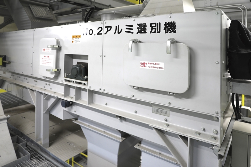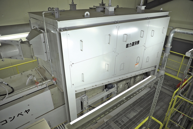 永久磁石回転式の選別機で、アルミニウムなどの非磁性物を選別します。