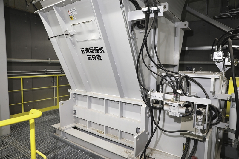 埋立ごみと低速回転式破砕機で前処理した粗大ごみを、選別に適した大きさに高速で砕きます。