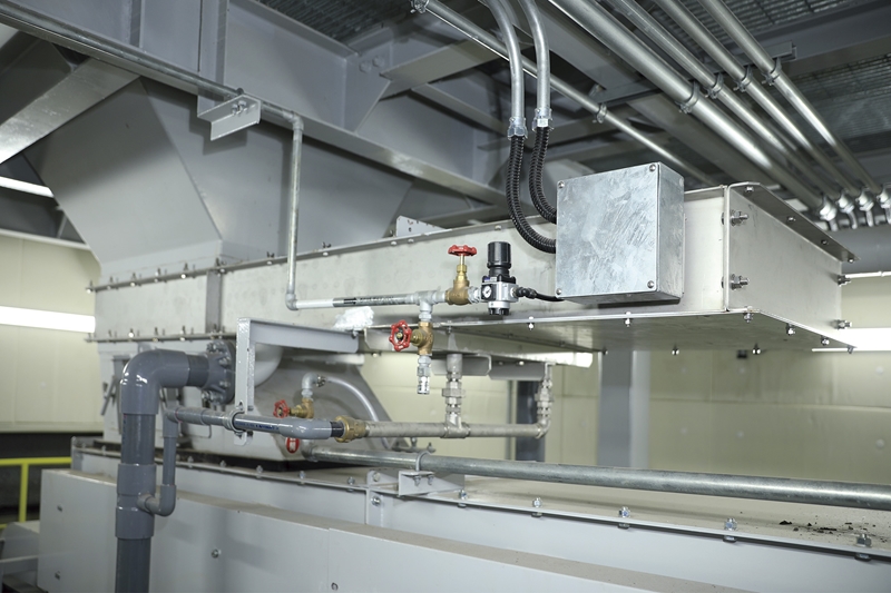 不燃ごみなどに含まれるリチウムイオン電池による火災を防ぐために搬送コンベヤに設置した防火ダンパを閉じ、確実に消火します。