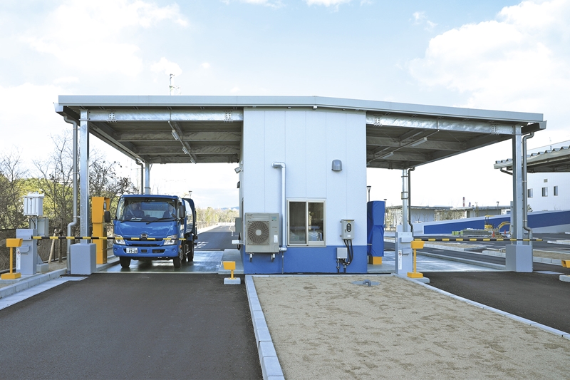 ごみ収集車で運ばれてきた可燃ごみはこの計量機で収集車ごと重さを量ります。